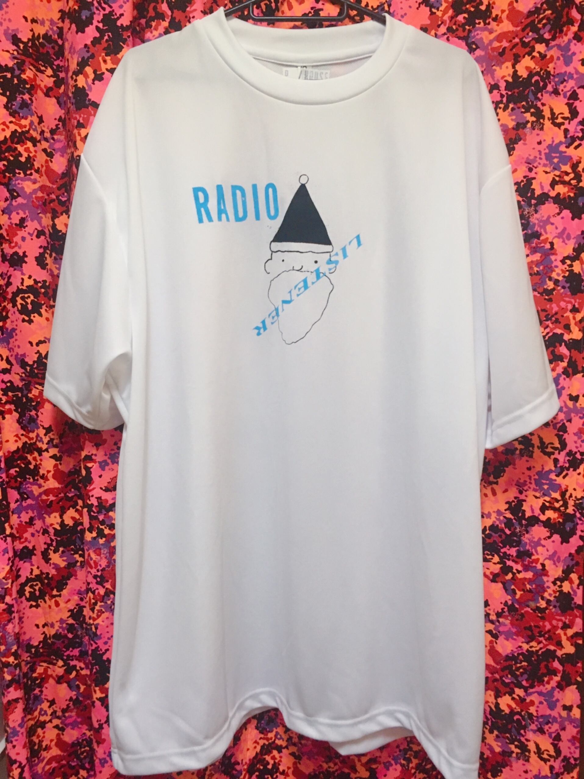 表には黒でサンタのイラストとRADIO LISTENERの文字をパステルブルーをシルクでプリント。