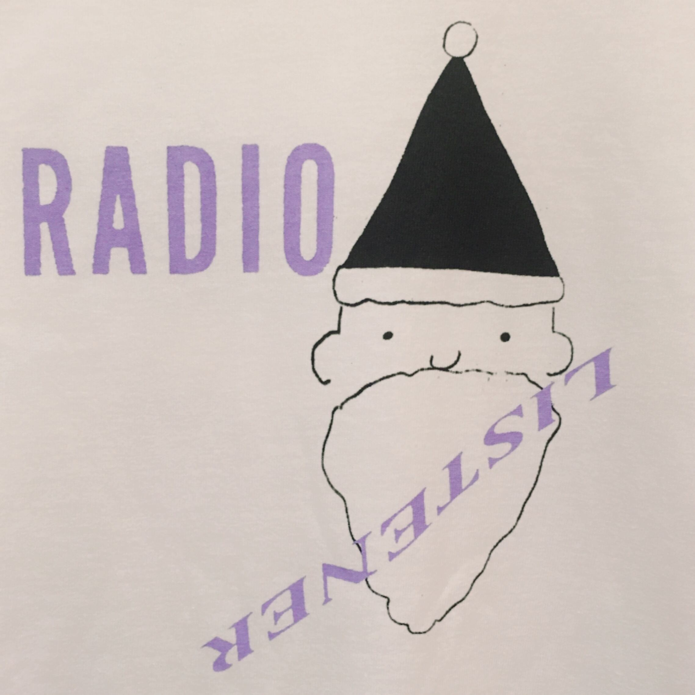 ボディのカラーは白で表には黒でサンタのイラストとRADIO LISTENERの文字をパステルパープルでシルクプリント。