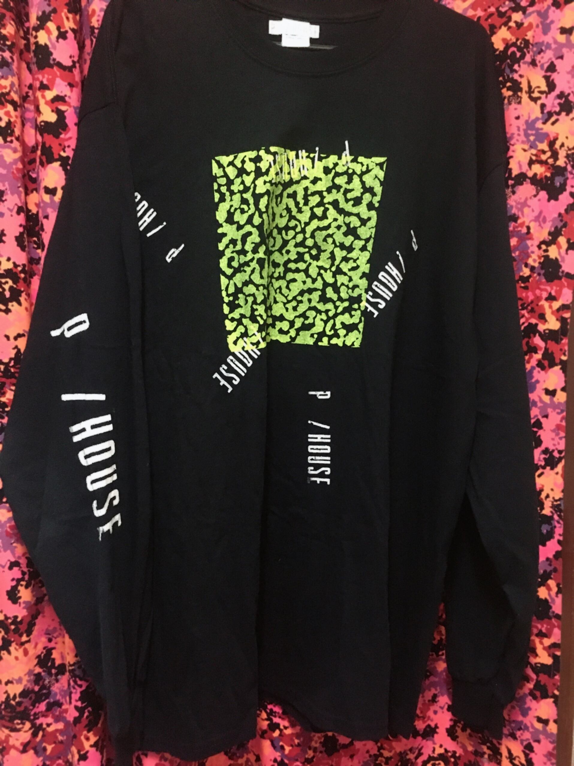 5箇所にも散りばめられたP/HOUSEロゴの上に蛍光黄色のレオパードをシルクプリント!