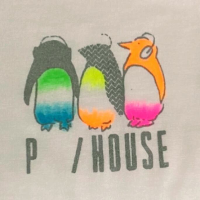 P/HOUSEのキャラクター的存在の3羽のペンギン左胸にシルバーでシルクプリント。