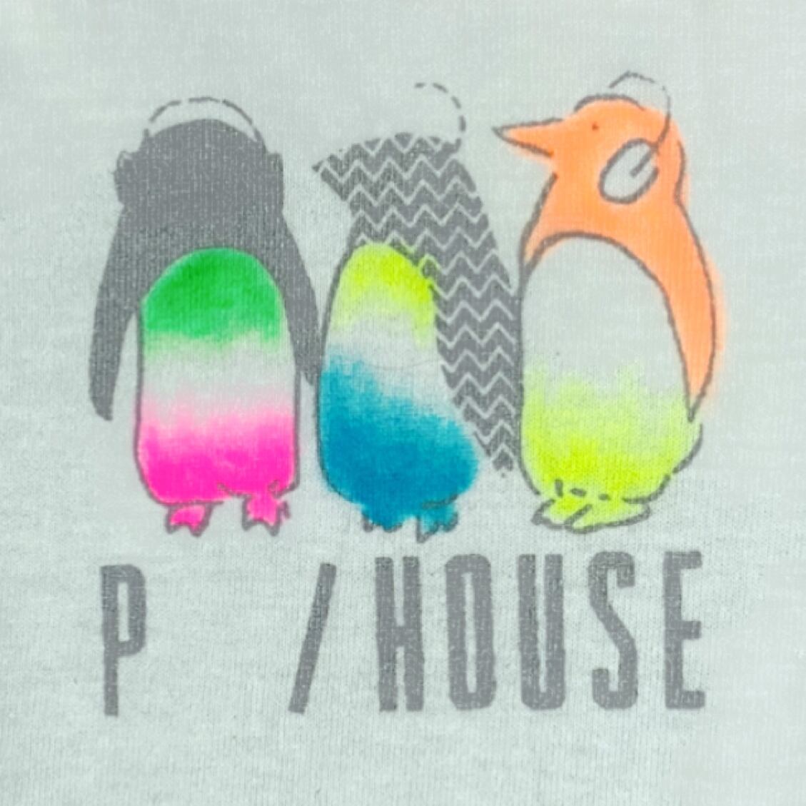 P/HOUSEのキャラクター的存在の3羽のペンギン左胸にシルバーでシルクプリント。