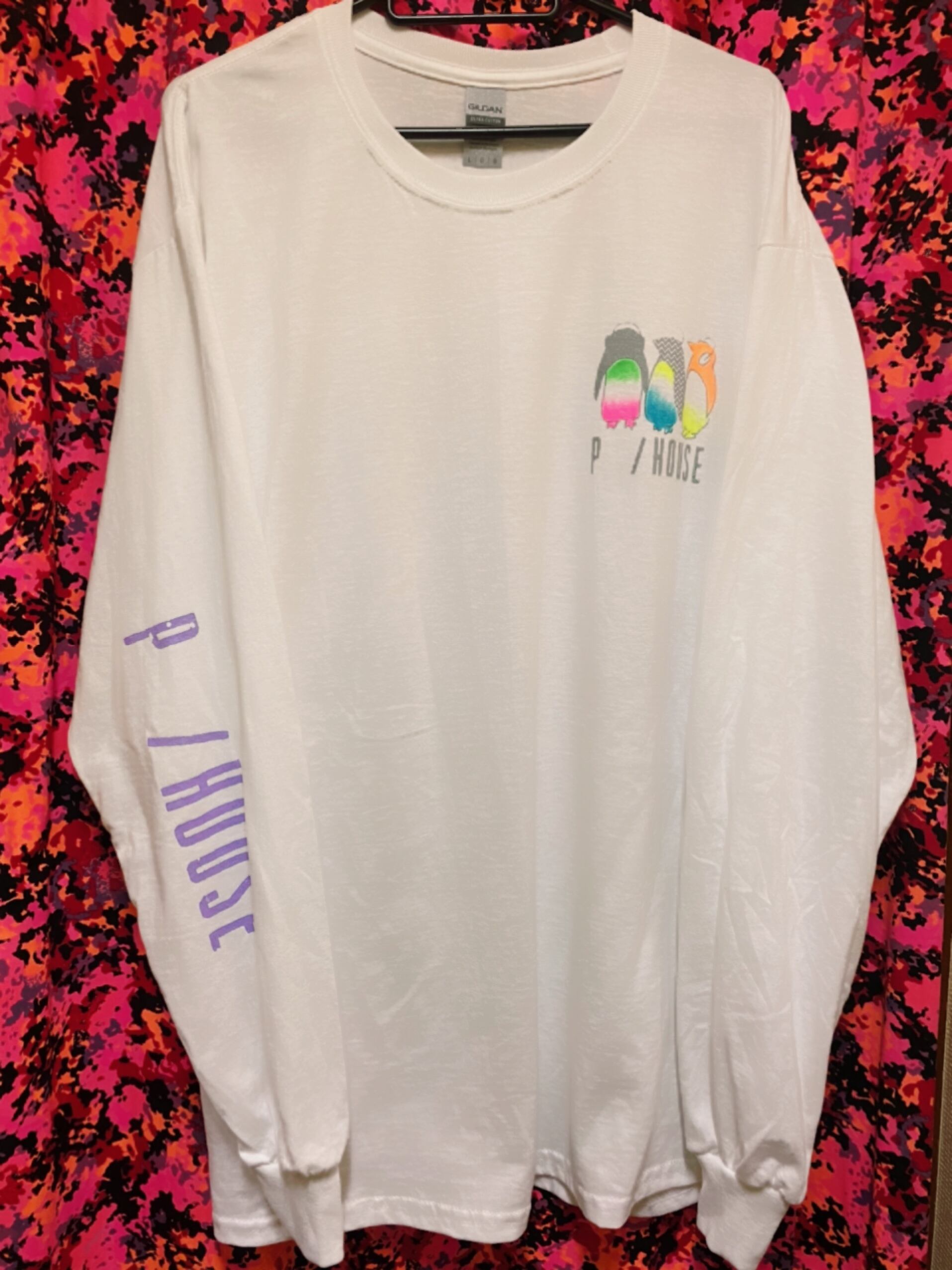 背面と右袖にパステルパープルで「P /HOUSE」をシルクプリント。